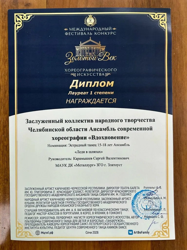 Легендарный коллектив Дворца культуры "Металлург" добился успеха на Международном фестивале-конкурсе "Золотой век" хореографического искусства. Масштабнейшее событие проходило с 26 по 29 марта в Сочи, в Зимнем театре.