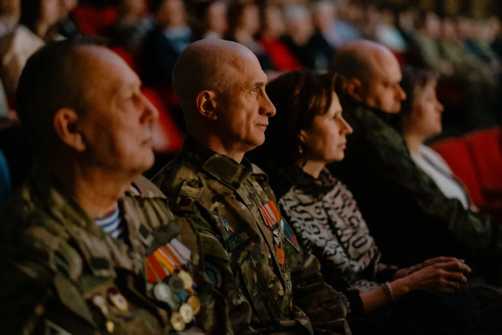 Неповторимую душевную атмосферу создавало присутствие в зале участников СВО, которых зрители приветствовала стоя, а также видео-приветы от бойцов с мест сражений и обращения мам, чьи сыновья отдали свои жизни, выполняя воинский долг.